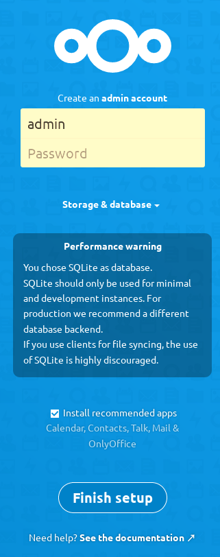 Click Finish Setup, and start using your new Nextcloud server.