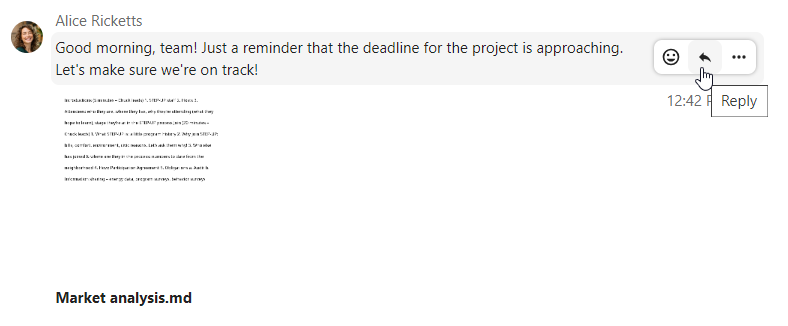 Here you can also create a direct link to the message or mark it unread so you will scroll back there next time you enter the chat. When it is a file, you can view the file in Files.
